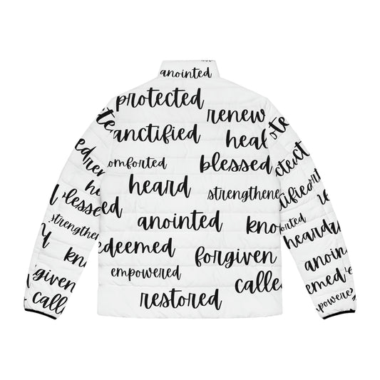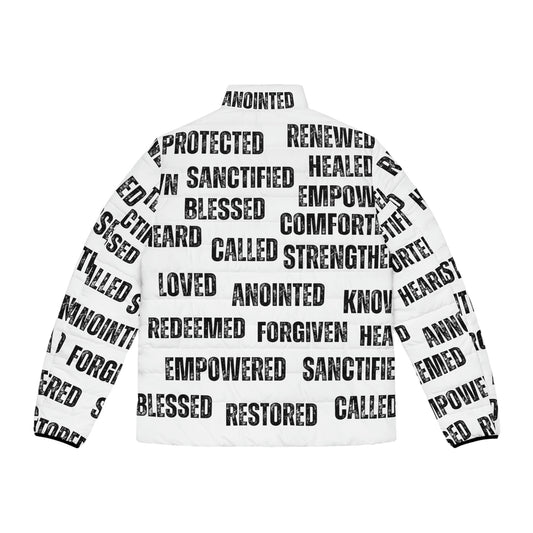 Christian Affirmations Puffer Jacket, Wrapped in God's Promises Graphic Jacket