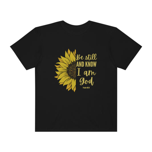 Be Still and Know I am God, Psalm 46:10, Sunflower Comfort Colors Christian T-Shirt