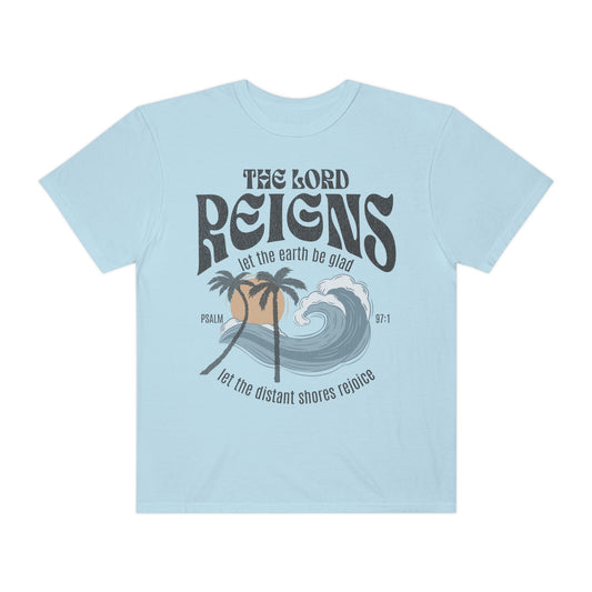 Christian Merch Comfort Colors Beach Summer Tee, Jesus Crewneck Surf Shirt, Let the Earth Be Glad Psalm 97:5 Unisex Garment-Dyed T-shirt