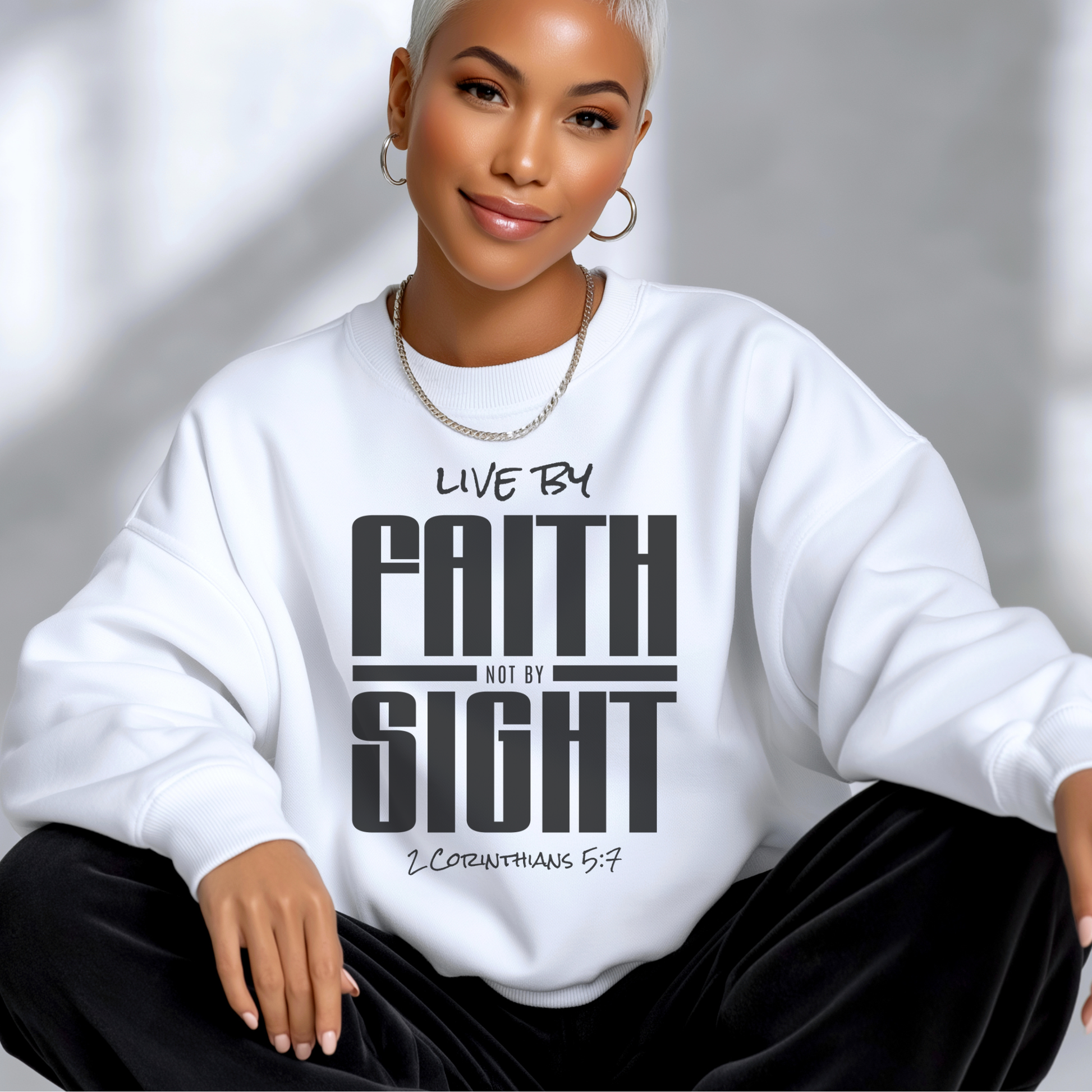 Faith Over Sight Crewneck Sweatshirt — "Live by Faith Not by Sight" Christian Pullover